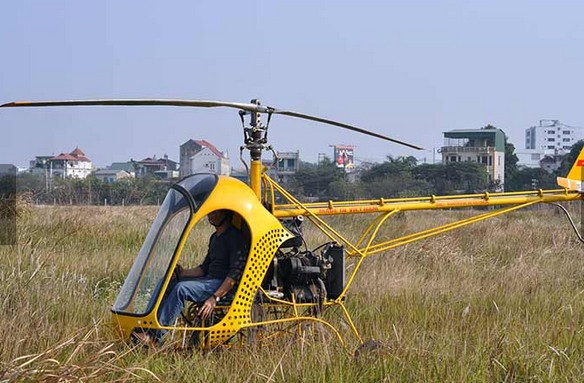Đây là lần thử nghiệm thứ ba của anh, và trong 2 lần thử nghiệm trước, chiếc máy bay đã có thể bay lên cách mặt đất khoảng 50cm. Vừa nói chuyện, anh vừa chuẩn bị những bước cuối cùng trước khi đưa trực thăng ra vị trí thử nghiệm bay.