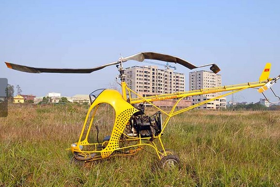 Anh Thắng cho biết anh chế tạo chiếc trực thăng này là từ sự đam mê của mình. Chiếc trực thăng sử dụng động cơ ô tô Suzuki 38kW,2.0L với vòng tua 4000-4500 vòng/phút, vì quá lớn nên anh phải giảm xuống còn 700 vòng/phút, số vòng tua cần đủ để cất cánh.