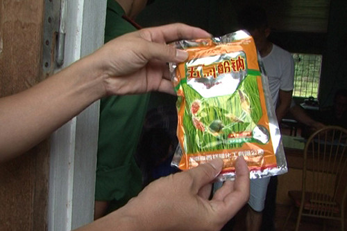 Gan DeQiang dùng hóa chất đựng trong bao màu vàng-xanh, toàn chữ Trung Quốc được xác định là không được sử dụng tại Việt Nam.