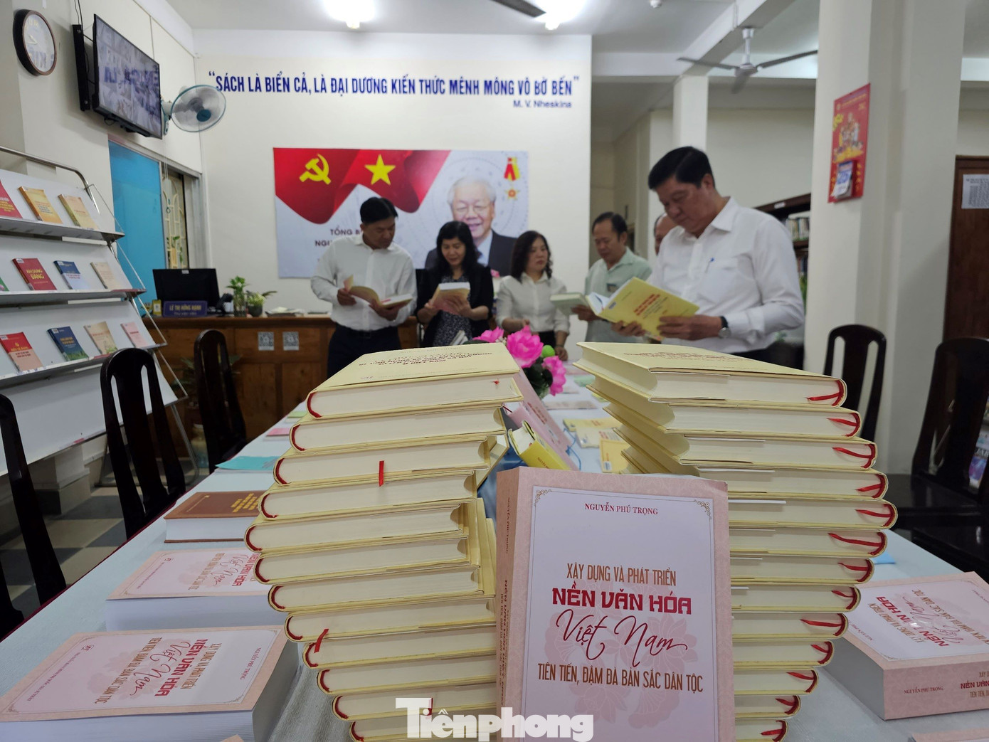 | Lãnh đạo TP Cần Thơ tìm hiểu sách Tổng Bí thư Nguyễn Phú Trọng tại thư viện thành phố. Ảnh: Hòa Hội. |