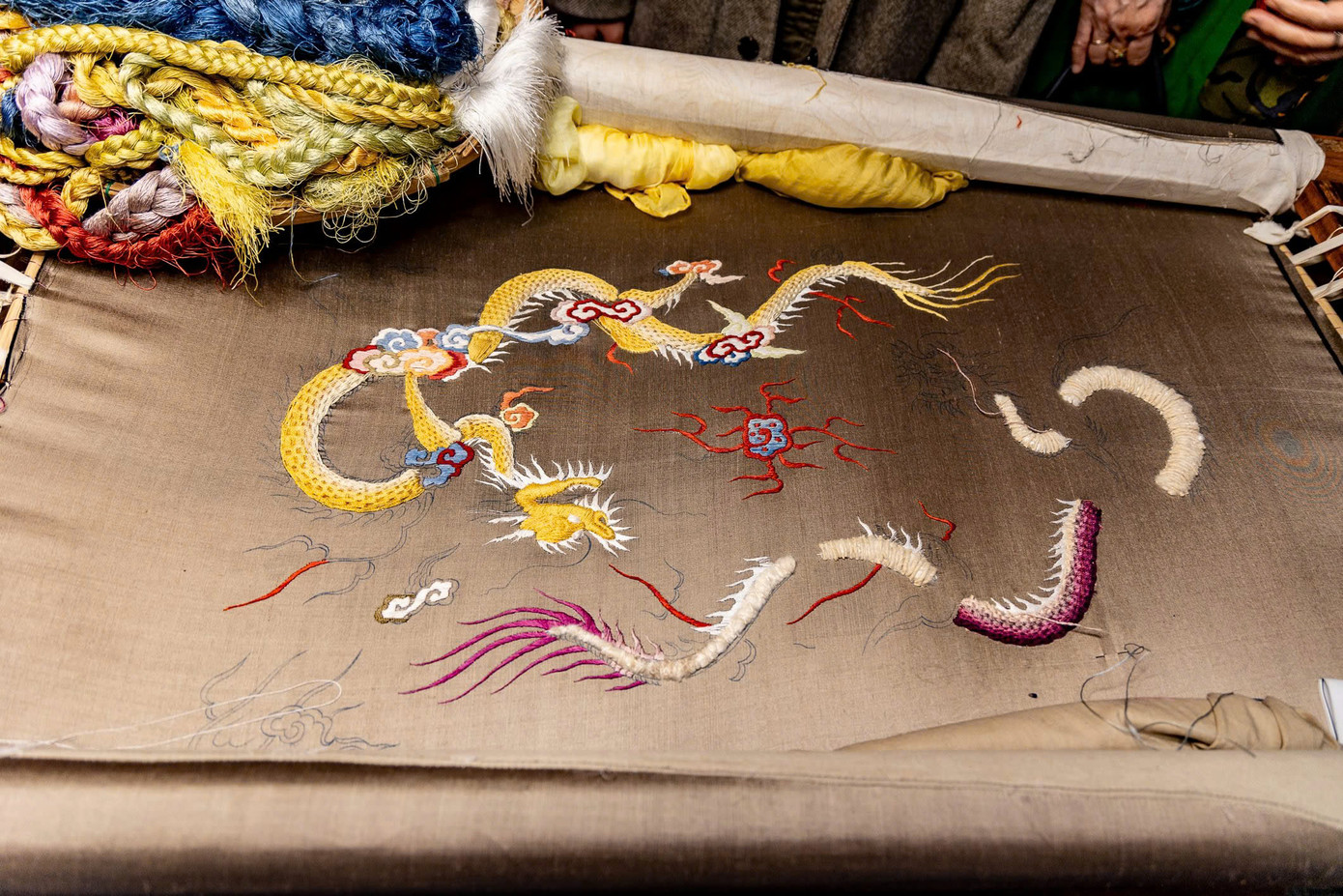 | Điểm nhấn của dịp này là bức tranh thêu từ đầu thế kỷ 20 được xuất khẩu sang Pháp |
