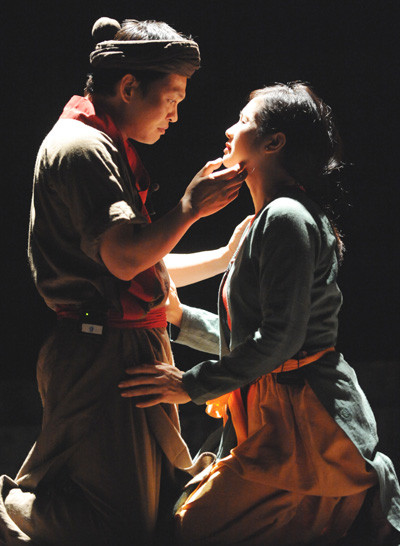 Anh vừa vào vai Lý Thường Kiệt trong vở “Ngàn năm tình sử”. Lại “cặp” với Thu Hà “lá ngọc cành vàng” (vai Thuận Khanh). Cảnh hôn trong kịch là thật chứ?