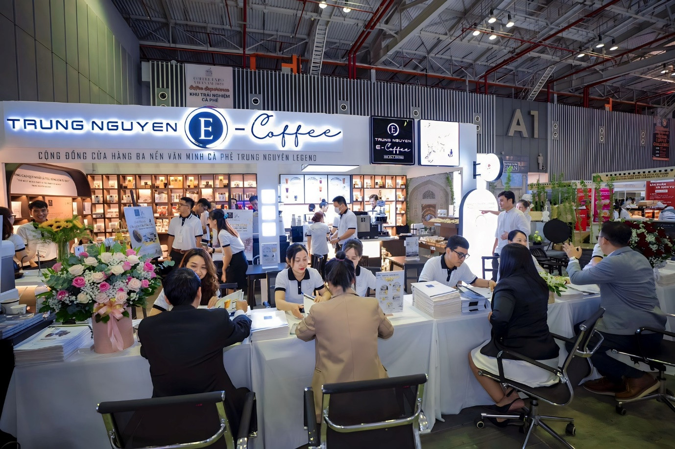 Tại Coffee Expo 2023, tập đoàn cà phê số 1 Trung Nguyên Legend đã mang đến một không gian cà phê năng lượng khác biệt, đặc biệt Trung Nguyên E-Coffee - Cộng đồng cửa hàng 3 văn minh cà phê thế giớivới những trải nghiệm độc đáo, thú vị về cà phê.