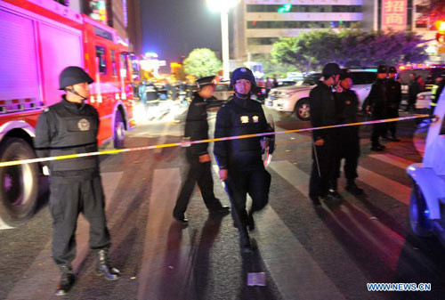 Trung Quốc cho rằng những phần tử ly khai từ khu tự trị bất ổn Tân Cương, nơi có cộng đồng thiểu số Duy Ngô Nhĩ theo đạo Hồi, phải chịu trách nhiệm cho hành động khủng bố được truyền thông nước này mô tả là "Vụ 11/9 của Trung Quốc". Người phát ngôn Bộ Ngoại giao Trung Quốc Tần Cương cho hay "một số lá cờ Đông Turkestan đã được tìm thấy tại hiện trường". Đây là cờ của một nhóm mà Bắc Kinh coi là phong trào khủng bố ly khai.