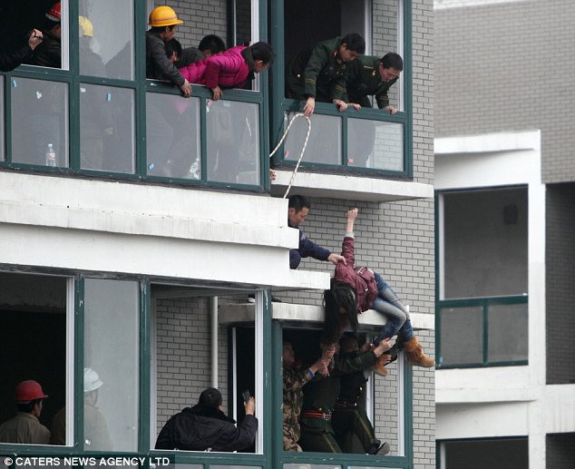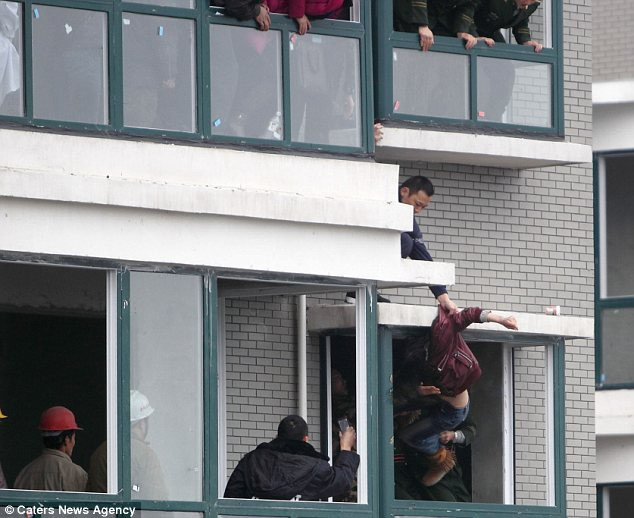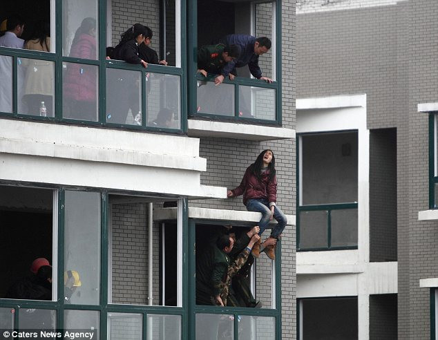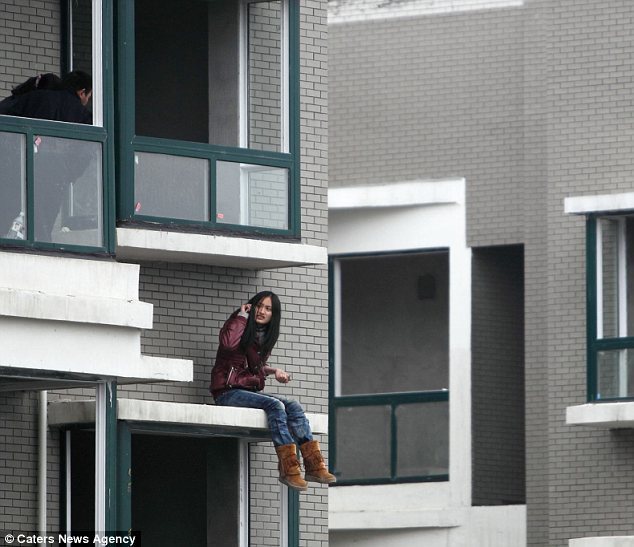 Vụ việc xảy ra sau khi mọi người dân ở thành phố Trường Sa, tỉnh Hồ Nam nghe thấy một tiếng hét ở bên ngoài một tòa nhà. Cô gái trẻ 24 tuổi đang đứng ở tầng 32 và chuẩn bị mọi tư thế để tự tử. Trên tay cô cầm một hòn đá, cứa vào tay và sau đó hét lên trong điện thoại.