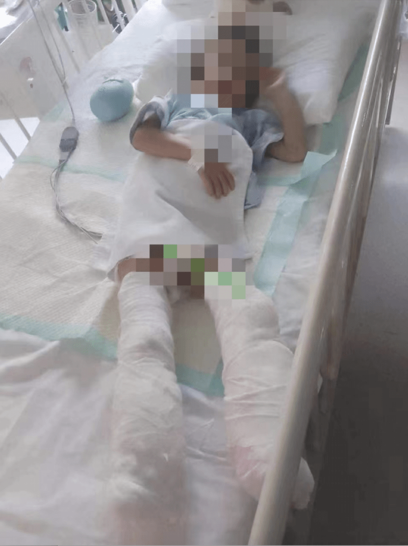 Trả lời báo chí Trung Quốc hôm 30/3, ông Môn - bố của cháu bé, cho biết, trước khi phẫu thuật, hai bàn chân của cháu sưng đỏ, ngón chân cái thậm chí chuyển sang màu đen.