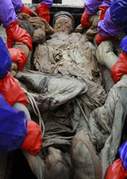 | Các nhân chứng cho biết xác ướp phát ra mùi khó chịu. |