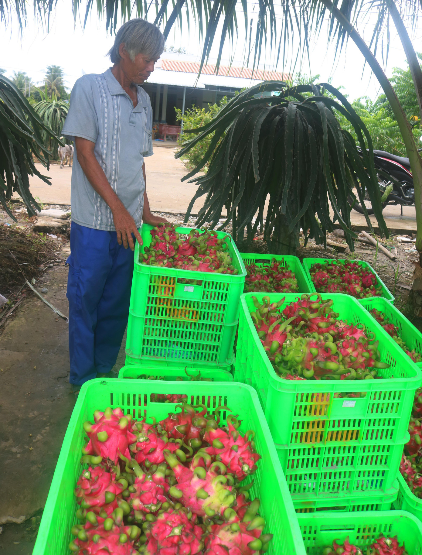 Theo anh Mười, năm nay giá phân thuốc tăng lên quá cao, chưa nói đến lãi, để có thể hòa vốn thì thanh long ít nhất phải bán được với giá 7.000-8.000 đồng/kg…