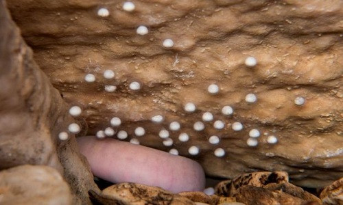 Thông qua màn hình tivi đặt gần đó, khách tham quan có thể xem những quả trứng nhỏ lơ lửng trên tảng đá. Thỉnh thoảng, một trong các quả trứng lắc nhẹ. "Đó là khoảnh khắc khiến bạn cảm thấy hạnh phúc vì đang tồn tại và chứng kiến sự kiện hiếm hoi như vậy", Discovery News dẫn lời Saso Weldt, nhà sinh vật học làm việc tại hang động Postojna, nằm trong số những hang động lớn nhất châu Âu và thu hút 700.000 lượt khách ghé thăm mỗi năm. Ảnh: Iztok Medja.