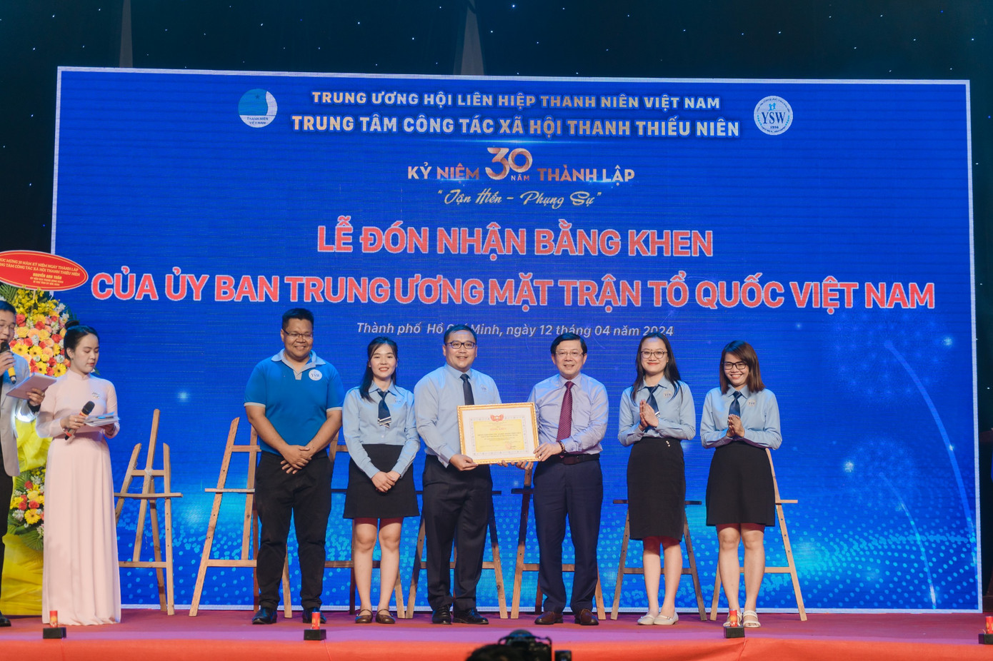 Sau 30 năm tận hiến và phụng sự, đến nay, Trung tâm CTXH thanh thiếu niên tự hào luôn là một trong những đơn vị sự nghiệp có nhiều đóng góp và phát triển của T.Ư Hội LHTN Việt Nam; được đón nhận bằng khen và các hình thức khen thưởng của Ban Bí thư T.Ư Đoàn TNCS Hồ Chí Minh, Thường trực Đoàn Chủ tịch T.Ư Hội LHTN Việt Nam hằng năm. Trung tâm CTXH thanh thiếu niên đã vinh dự được nhận Cờ thi đua là “Đơn vị dẫn đầu thi đua trong công tác Hội và phong trào thanh niên năm 2023” do Ủy ban T.Ư Hội LHTN Việt Nam trao tặng.
