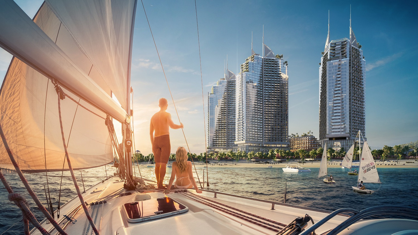 Dự án Sailing Bay Ninh Chữ của Crystal Bay được đặt trên mảnh đất hình mũi thuyền vươn ra biển. 4 tòa tháp liên kết được thiết kế hình thuyền buồm căng gió, trở thành biểu tượng phồn vinh cho vùng đất này, tương tự như biểu tượng Khách sạn cánh buồm với vùng đất Dubai thịnh vượng.
