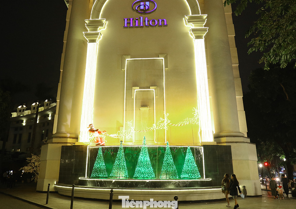 Khách sạn Hilton rực rỡ hơn với cây thông bằng đèn led cùng Ông già Noel cưỡi tuần lộc