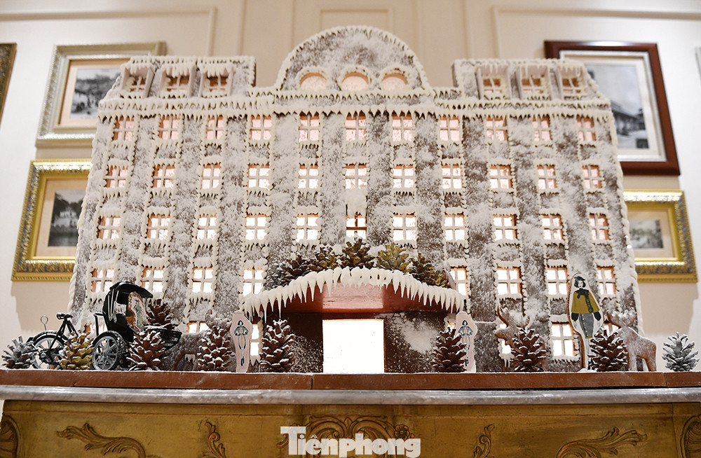 Một khách sạn 5 sao được trang trí tiểu cảnh là ngôi nhà phủ kín tuyết trắng cùng những quả thông đẹp mắt