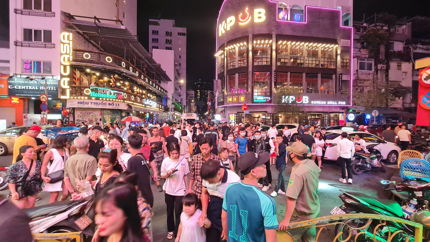| Phố Tây Bùi Viện (quận 1, TPHCM) cũng là điểm vui chơi được nhiều người dân lựa chọn. Trong những ngày nghỉ lễ, nơi đây luôn nhộn nhịp, đông đúc và sôi động. |