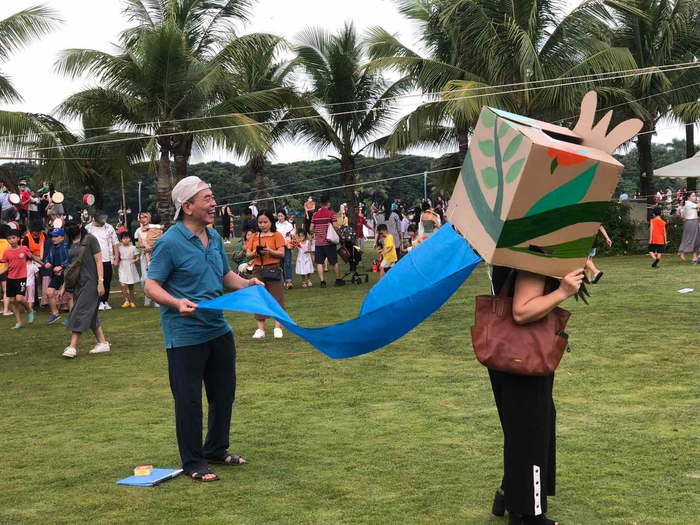 Chị Thanh Hằng (43 tuổi, cư dân Lake 1) trán lấm tấm mồ hôi vì cùng con trai tham gia nhiều trò chơi. Chị Hằng đặc biệt hứng thú với trò tự làm đèn trung thu bằng giấy màu, thanh tre. “Tuổi thơ của con thực sự có nhiều trải nghiệm chứ không phải chỉ có những chiếc đèn điện lập lòe, con được tô vẽ mặt nạ giấy bồi. Vì thế mà tôi cũng được sống lại tuổi thơ của mình khi còn ở nhà với bố mẹ”, chị Hằng kể.