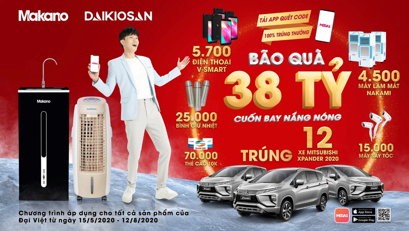 Trên mỗi sản phẩm khuyến mại của Đại Việt sẽ in mã phản hồi nhanh (QR Code), khách hàng sẽ cài đặt ứng dụng Mega 1 để nhập mã QR code để tham gia trò chơi “Lật ô xác định trúng thưởng” để trúng thưởng các sản phẩm: máy làm mát Nakami, điện thoại V-smart, bình giữ nhiệt, thẻ cào điện thoại. Đồng thời khách hàng sẽ được nhận được mã cơ hội quay số trúng thưởng hàng tuần là xe Mitsubishi giá trị lên đến 550 triệu đồng.