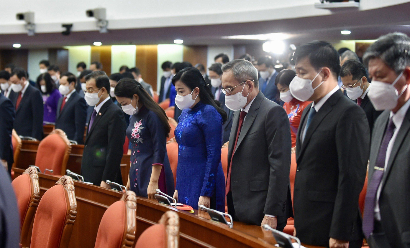 Trước khi tiến hành chương trình Hội nghị, Trung ương đã dành 1 phút mặc niệm đồng bào, đồng chí, chiến sĩ hy sinh, từ trần vì dịch bệnh COVID-19 vừa qua.