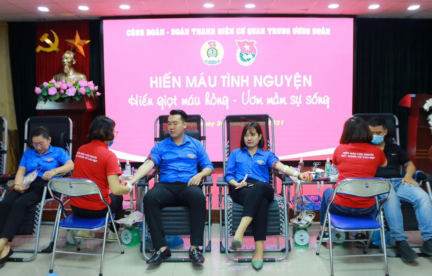 Chương trình hiến máu tình nguyện năm 2021 có chủ đề "Hiến giọt máu hồng - ươm mầm sự sống" thu hút đông đảo sự quan tâm của cán bộ, công đoàn viên, đoàn viên của cơ quan T.Ư Đoàn tham gia.