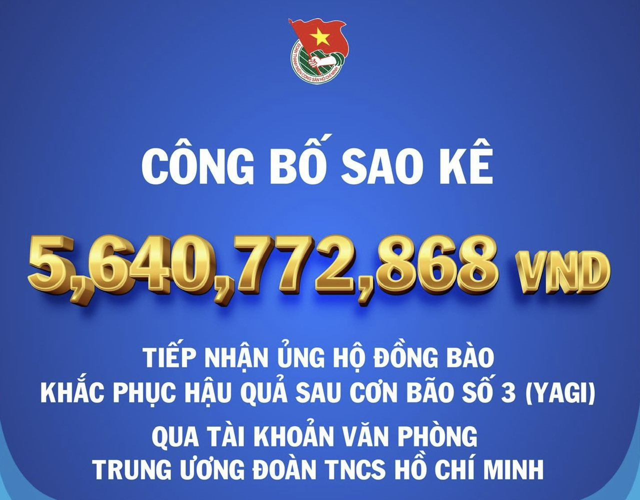 Theo bảng sao kê, đã có 1.165 lượt chuyển khoản của các tổ chức, cá nhân đã chuyển về tài khoản Ngân hàng TMCP Quân đội với tổng số tiền là 5,640,772,868 vnđ. (bằng chữ: năm tỉ sáu trăm bốn mươi triệu bảy trăm bảy mươi hai nghìn tám trăm sáu mươi tám đồng).