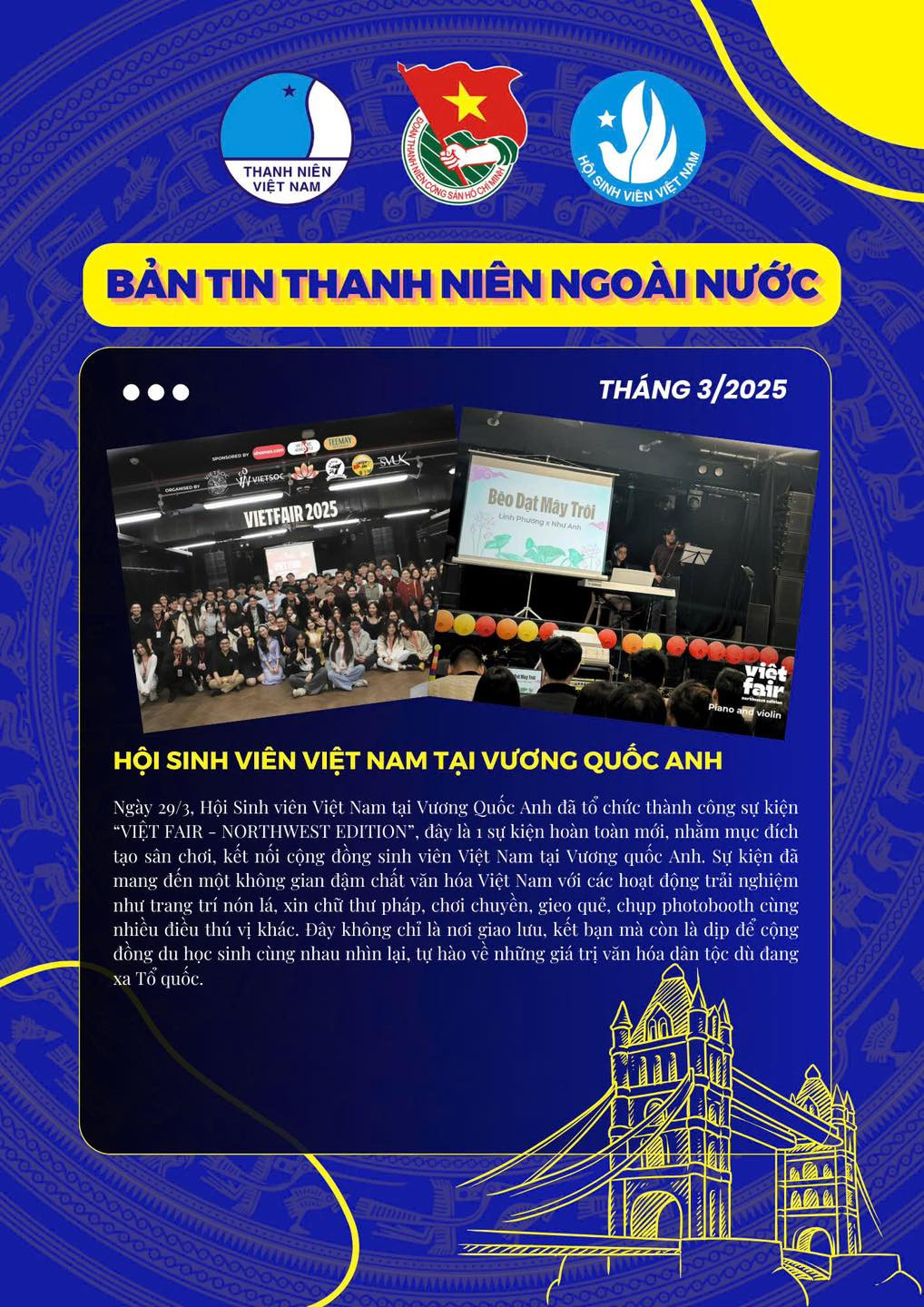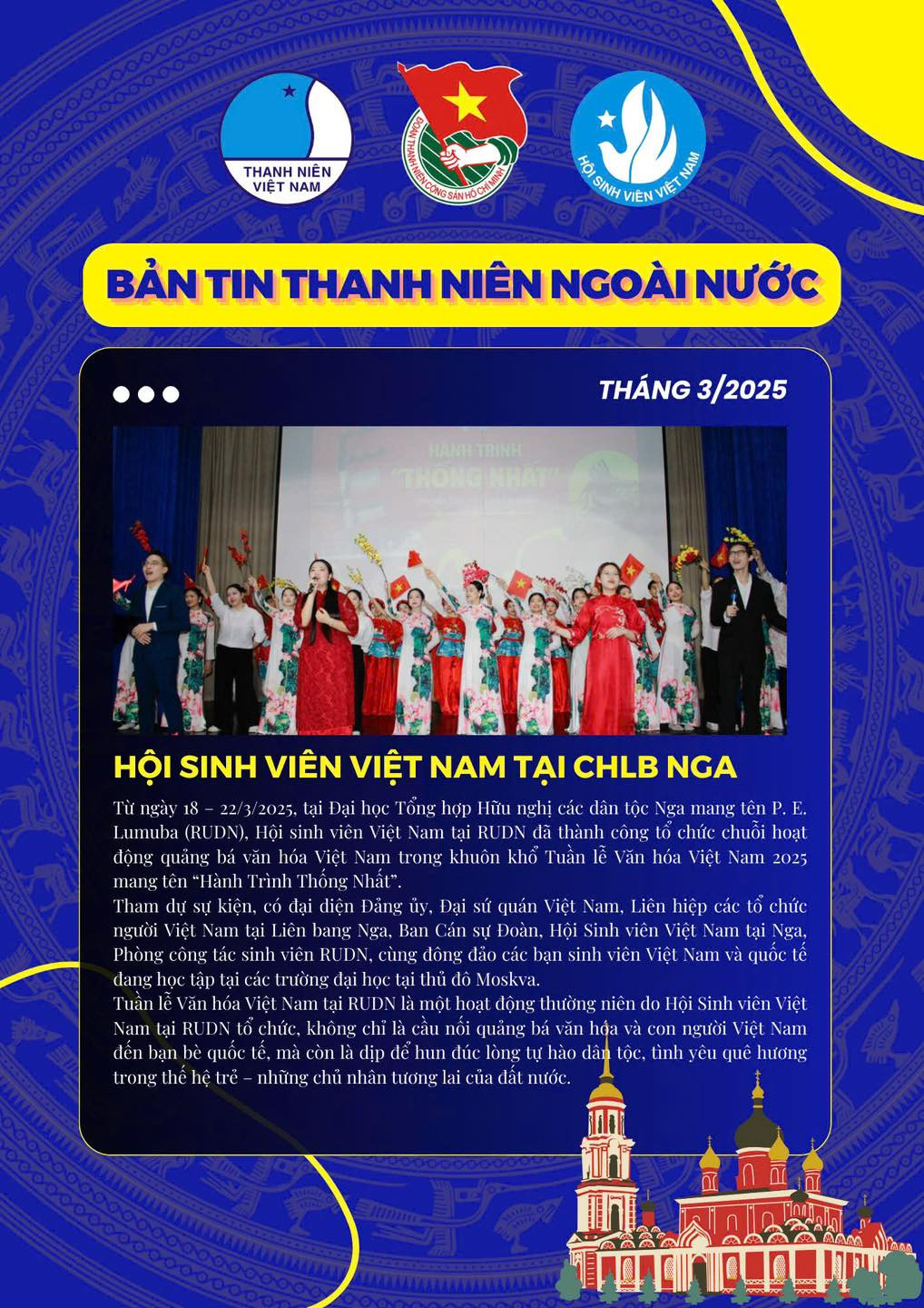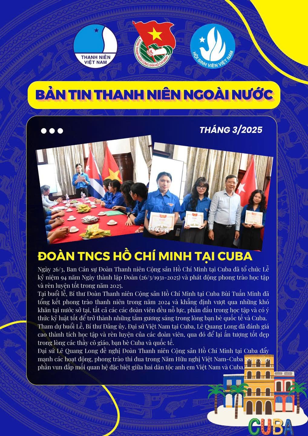 Ngày 4/4, Bản tin Thanh niên ngoài nước đầu tiên đã được tổ chức Đoàn, Hội đăng tải. Bản tin nhằm kết nối trao đổi thông tin hai chiều, phản ánh sinh động hoạt động của các tổ chức Đoàn, Hội Thanh niên – Sinh viên Việt Nam ở nước ngoài; cập nhật kịp thời các chủ trương, định hướng, hoạt động của tổ chức Đoàn – Hội trong nước.