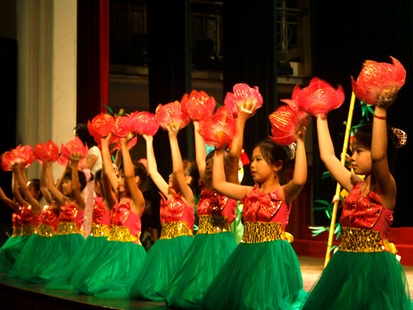 | Tiết mục văn nghệ được giáo viên và học sinh thể hiện. |