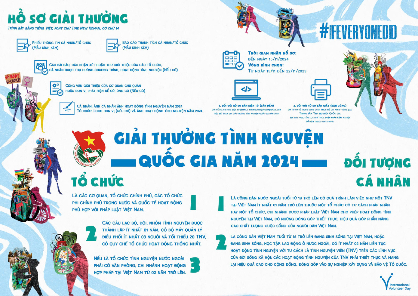 Giải thưởng Tình nguyện Quốc gia năm 2024 sẽ được trao tặng 10 tổ chức tình nguyện xuất sắc và 10 cá nhân xuất sắc.