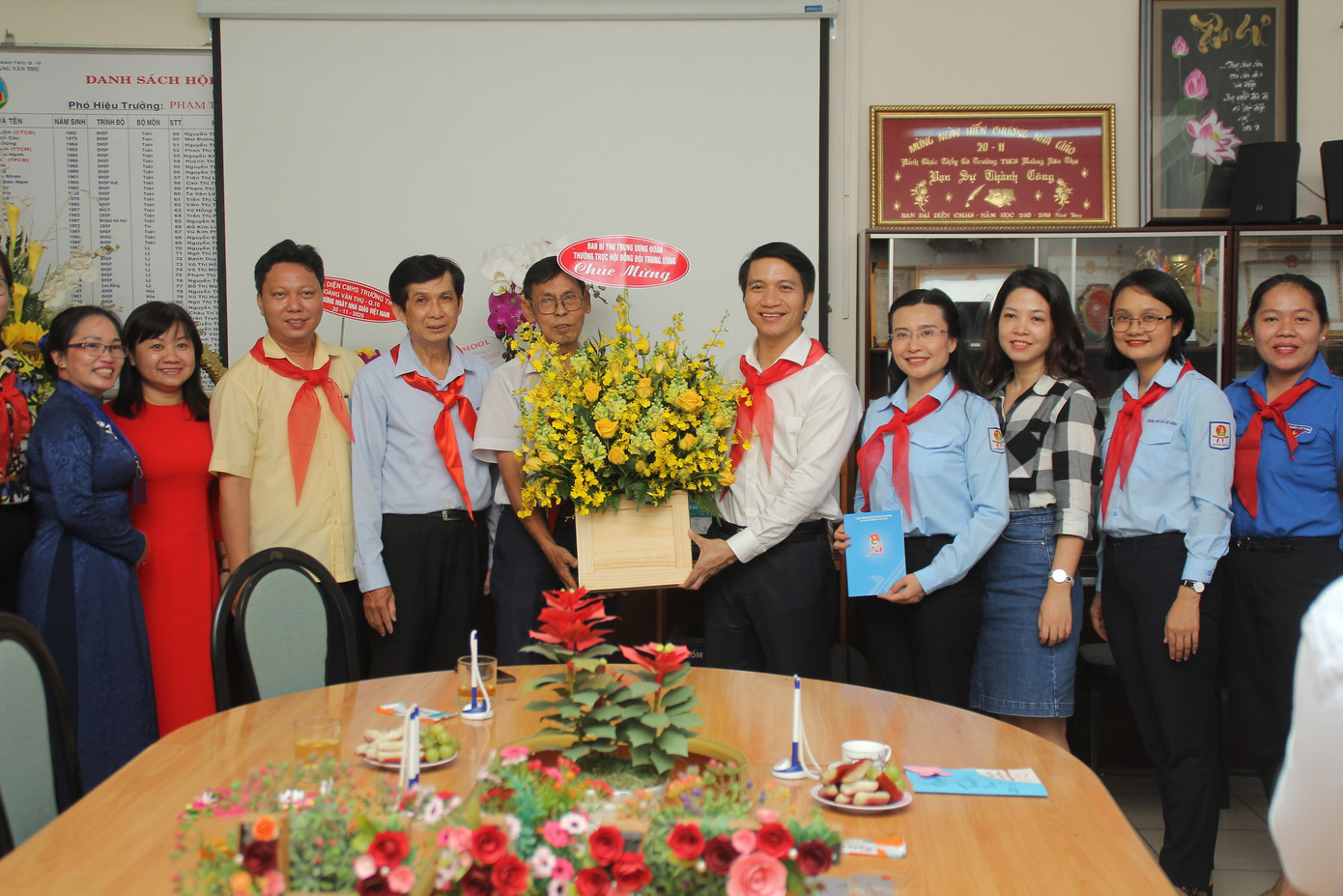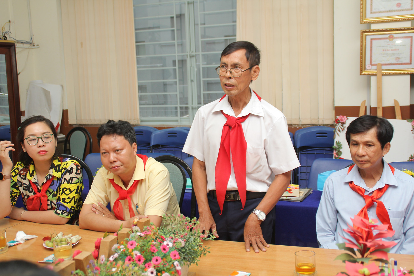 Trong khuôn khổ các hoạt động tri ân, đoàn công tác cũng đến thăm thầy Dương Văn Hoàng, Tổng phụ trách Đội Trường THCS Hoàng Văn Thụ, quận 10, TPHCM.