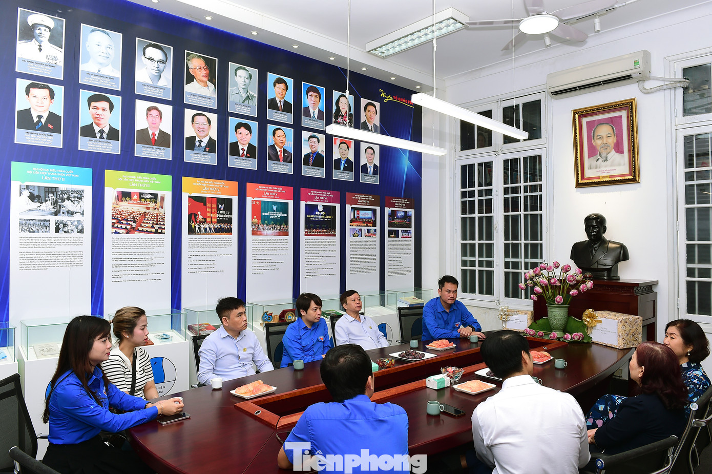 | Lãnh đạo T.Ư Hội LHTN Việt Nam và đại diện gia đình Đại tướng Nguyễn Chí Thanh trò chuyện ở phòng truyền thống T.Ư Hội LHTN Việt Nam. Ảnh: Xuân Tùng |