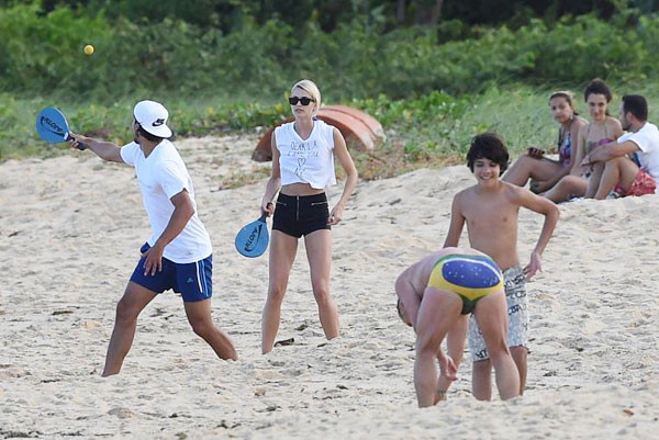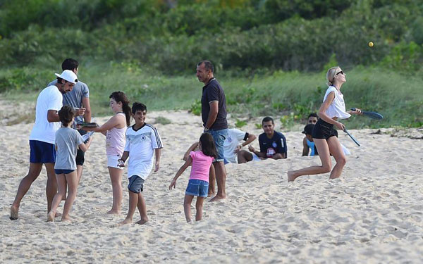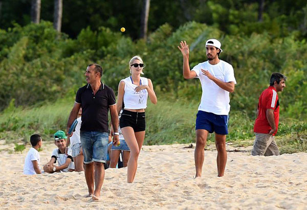Trước trận bán kết với chủ nhà Brazil, HLV Joachim Loew đã "thả cửa" cho các học trò gặp gỡ vợ và bạn gái. Chẳng thế mà Sami Khedira và bạn gái Lena Gerke có một ngày lãng mạn bên bãi biển.