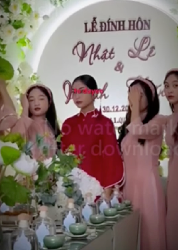 Mới đây, Nhật Lê khiến nhiều người bất ngờ với loạt ảnh và clip trong lễ cưới. Theo những hình ảnh đang được netizen chia sẻ trên mạng xã hội, Nhật Lê diện chiếc áo dài đỏ trong ngày trọng đại của mình. Cô nàng cũng chọn kiểu búi tóc đơn giản, nhẹ nhàng, không quá cầu kỳ nhưng tươi tắn, xinh đẹp. Bên cạnh đó là hình ảnh Nhật Lê rạng rỡ xuất hiện trên sân khấu trong chiếc váy cô dâu. Người đẹp nắm tay chú rể, gương mặt lộ rõ vẻ hạnh phúc.