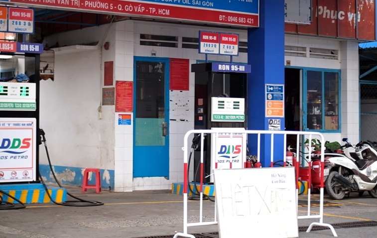 Tương tự, cửa hàng xăng dầu trên đường Kinh Dương Vương, đoạn gần bến xe miền Tây (quận Bình Tân) cũng thông báo không còn xăng để phục vụ khách hàng. Khi được hỏi thì nhân viên bán xăng cho biết, thời gian qua, người dân đổ xô đi đổ xăng dẫn đến việc cửa hàng đã bán hết xăng, hiện chưa nhập về kịp.