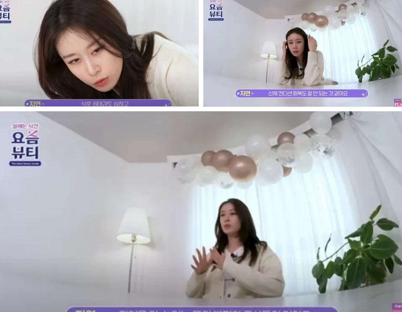 Cô nàng "em út T-ARA" cũng trấn an những người hâm mộ rằng cô đang cải thiện tình trạng sức khoẻ bằng chế độ ăn uống lành mạnh, ngoài ra còn uống thuốc và sử dụng thực phẩm chức năng để đối phó với tình trạng cơ thể mình: "Thực chất, mình đã luôn phải sử dụng thuốc tiêu hoá vì thói quen ăn uống thất thường". Jiyeon cũng nói thêm về "chế độ ăn lặp đi lặp lại, nỗi lo lắng gặp phải yo-yo (tình trạng giảm cân tiêu cực và cân nặng sẽ tăng trở lại rất nhanh chóng khi cơ thể hấp thụ đồ ăn trở lại), các vấn đề về ruột và rối loạn tiêu hoá".
