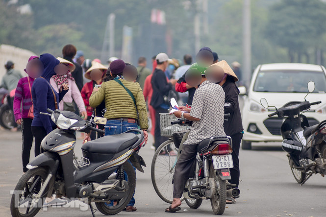 Dân "phe vé" liên tục chào mời những người có nhu cầu mua vé vào sân xem bóng nhằm hưởng chênh lệch.