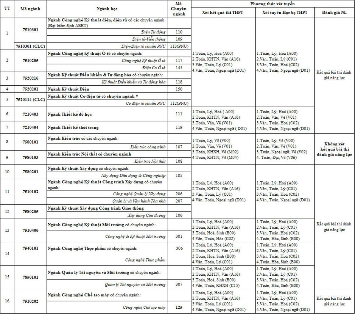 - Kỹ thuật Cơ điện tử: có chuyên ngành Cơ Điện tử chuẩn PNU (hợp tác với ĐH Purdue, Mỹ);