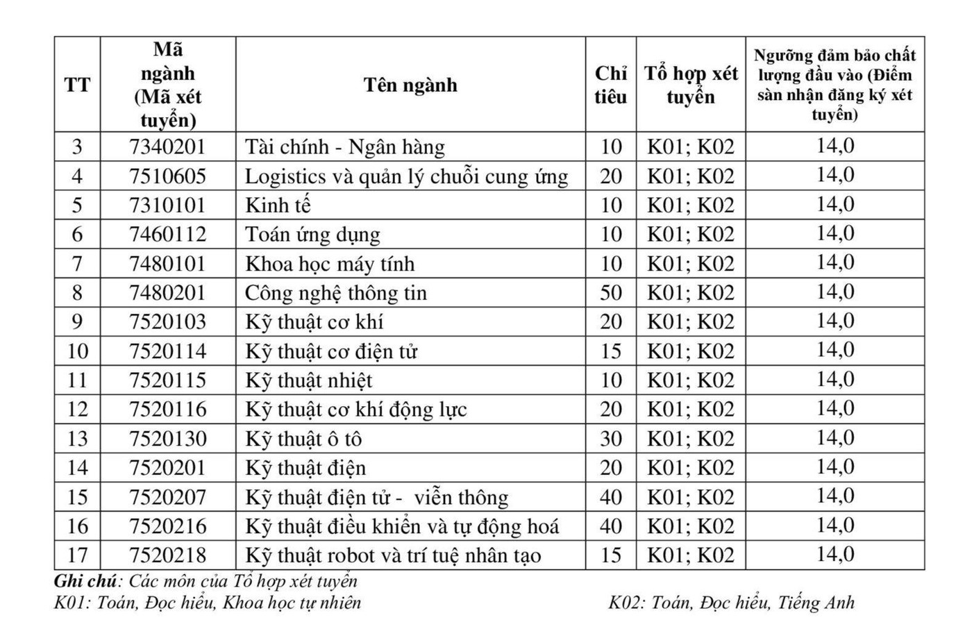 TPO - Trường Đại học Giao thông Vận tải vừa công bố ngưỡng đảm bảo chất lượng đối với 3 phương thức xét tuyển còn lại của trường là xét kết quả thi tốt nghiệp THPT, xét tuyển kết hợp chứng chỉ ngoại ngữ và xét kết quả kỳ thi đánh giá tư duy của Trường Đại học Bách khoa Hà Nội.