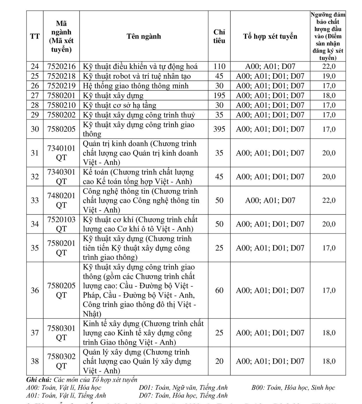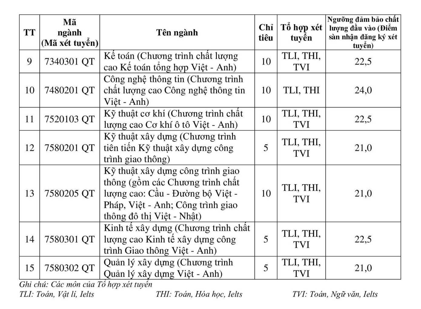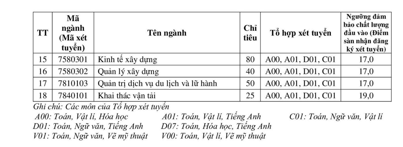 Theo đó, đối với phương thức xét kết quả thi tốt nghiệp THPT, ngưỡng đảm bảo chất lượng (điểm sàn) của Trường Đại học (ĐH) Giao thông Vận tải dao động từ 17 - 22 điểm đối với cơ sở phía Bắc. Cơ sở phía Nam từ 16 - 21 điểm.