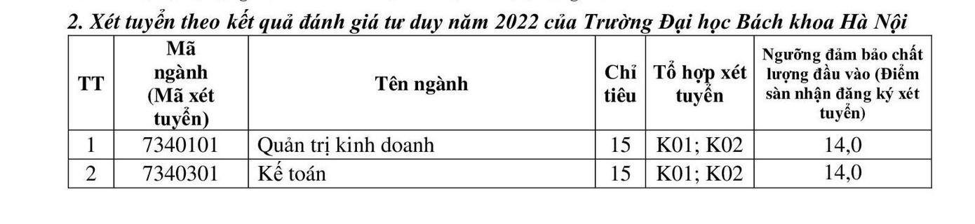 Điểm sàn đối với xét kết quả kỳ thi đánh giá tư duy của Trường ĐH Bách khoa Hà Nội là 14 điểm.