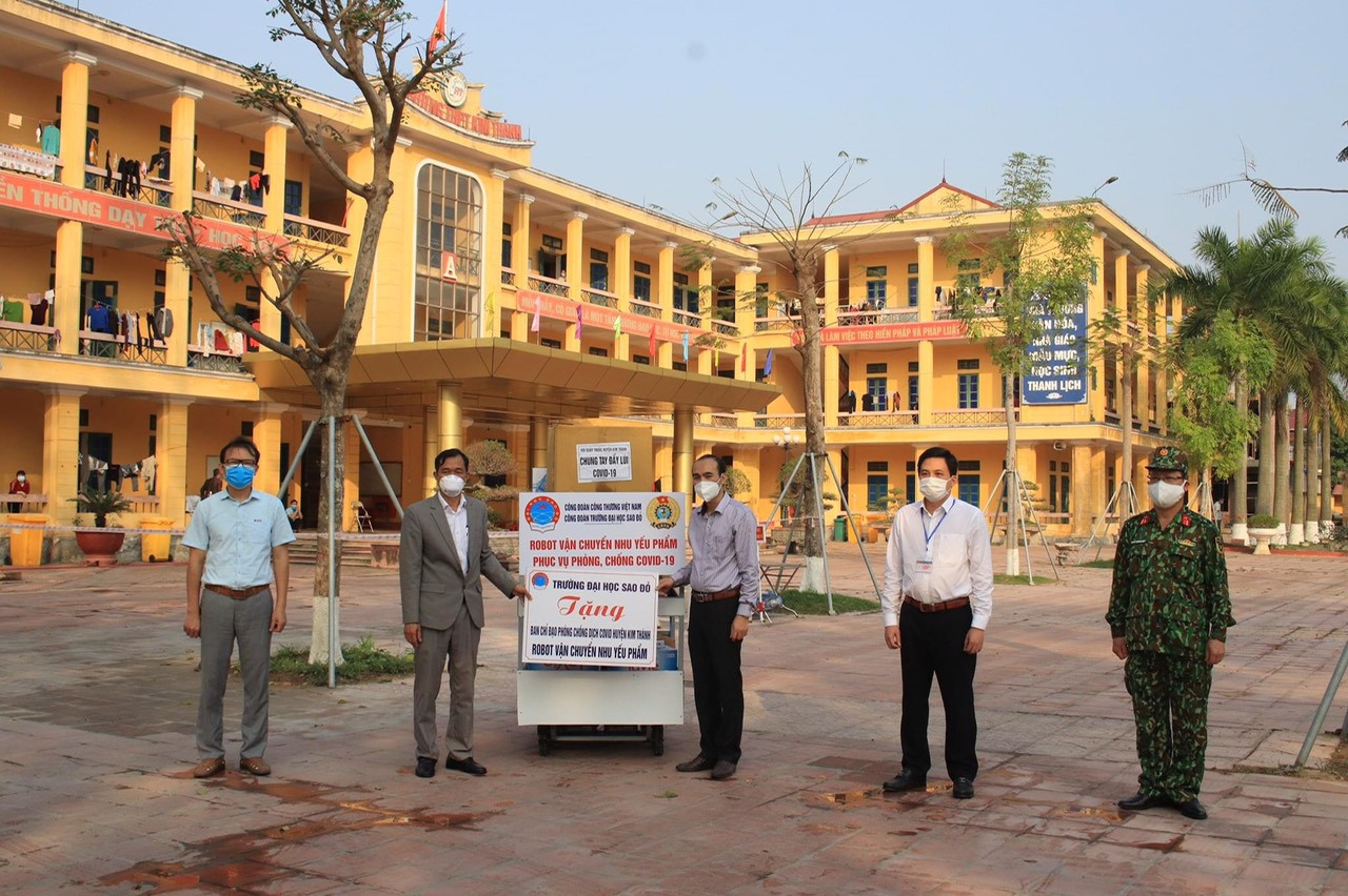 Chỉ sau 32 giờ làm việc nhóm cán bộ, giảng viên nhà trường tiếp tục chế tạo thêm 02 robot vận chuyển để tăng cường phục vụ tại các bệnh viện dã chiến, các khu cách ly tập trung trên địa bàn tỉnh Hải Dương.