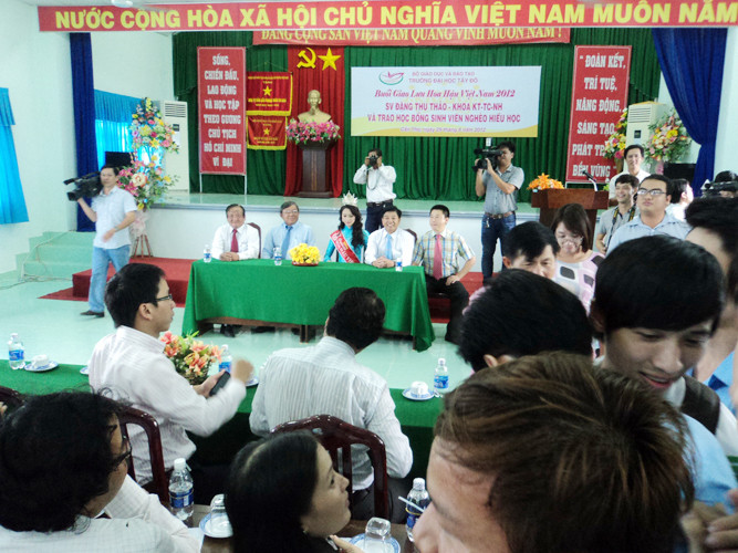 Quyền Hiệu trưởng Đại học Tây Đô Phan Văn Thơm phát biểu “thật vui, náo nhiệt và xúc động. Hoa hậu Việt Nam 2012 đem niềm tự hào về cho bản thân, gia đình, cả Trường Đại học Tây Đô và vùng đất đồng bằng sông Cửu Long”.