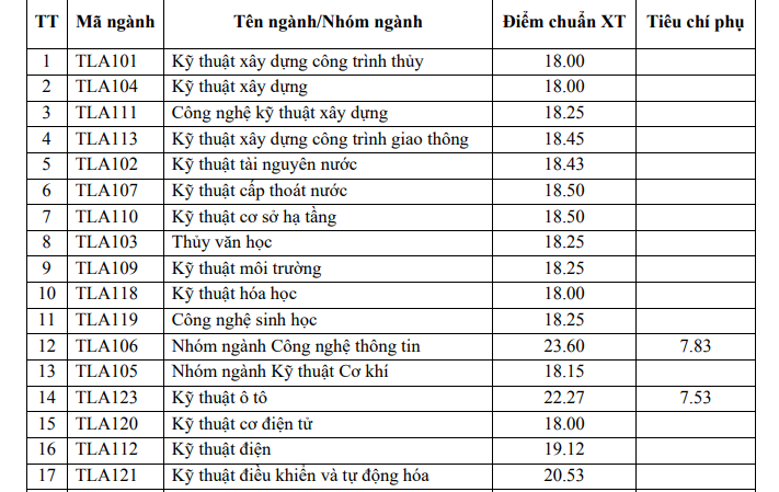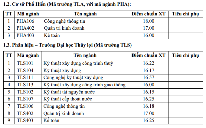Điểm chuẩn tại cơ sở Phố Hiến như sau: