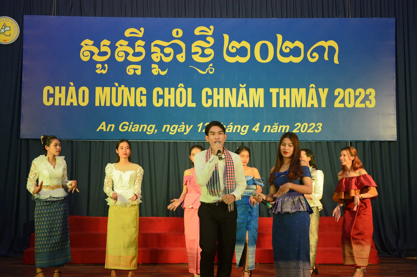 | Các bạn sinh viên biểu diễn các tiết mục văn nghệ chào mừng Tết cổ truyền Chol Chnam Thmay. (Ảnh: ĐH An Giang) |