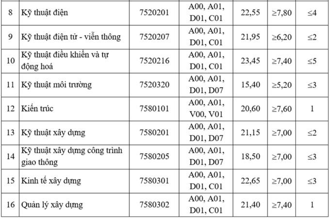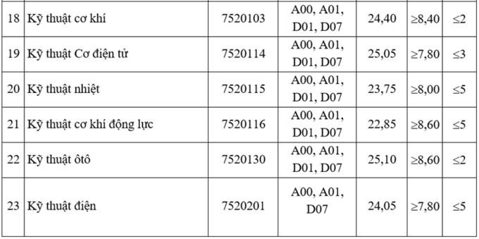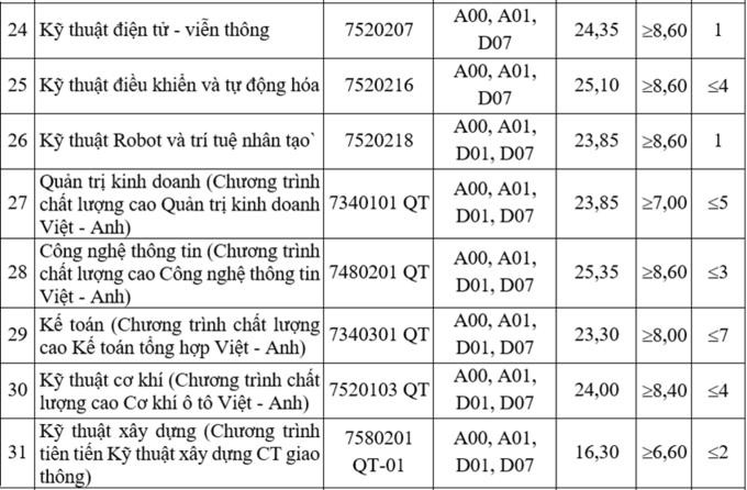 Trong khi đó Logistics và Quản lý Chuỗi cung ứng là ngành duy nhất lấy điểm chuẩn trên 25 tại TP. HCM. Ở mức thấp nhất, Kỹ thuật môi trường tại cơ sở TP. HCM lấy 15,4 điểm. Mức này thấp hơn 0,65 so với điểm chuẩn thấp nhất (16,05 điểm) năm ngoái.