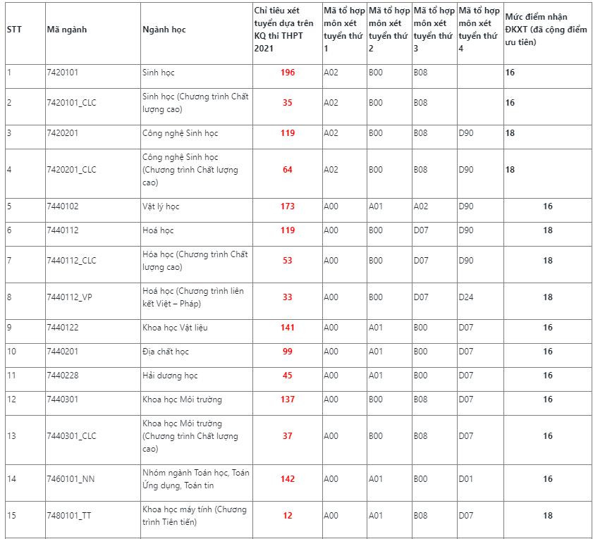 Trường có tổng cộng 2.318 chỉ tiêu xét theo phương thức này. Trong đó, một số ngành chỉ tiêu xét nhiều như: Nhóm ngành Máy tính và Công nghệ thông tin (215 chỉ tiêu), Sinh học (196 chỉ tiêu), Công nghệ thông tin (Chất lượng cao - 147 chỉ tiêu…)