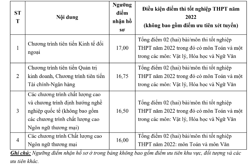 Mức điểm nhận hồ sơ xét tuyển dựa trên kết quả thi tốt nghiệp THPT năm 2022 (phương thức xét tuyển 4) cụ thể như sau: