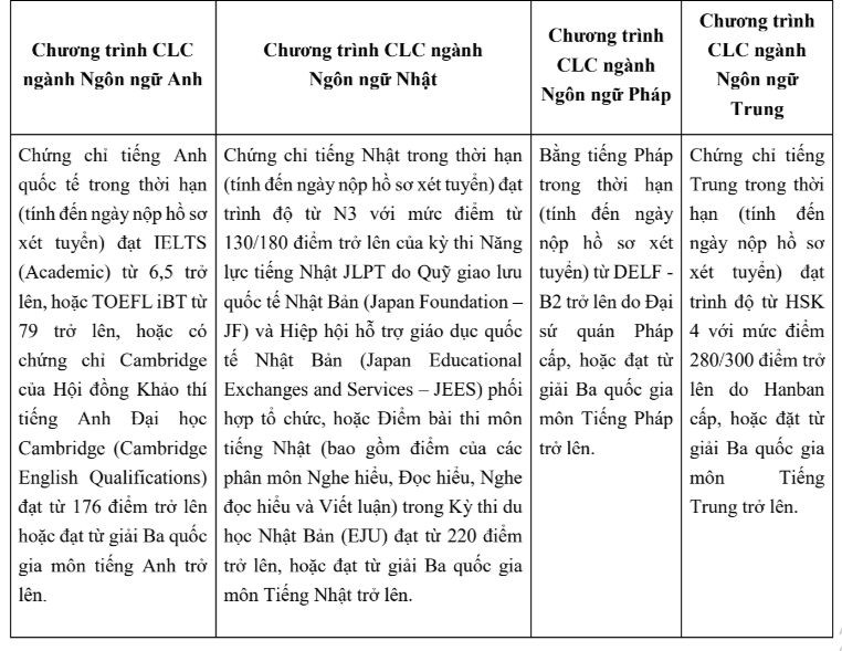 Đối với phương thức 3, xét tuyển kết hợp giữa chứng chỉ ngoại ngữ quốc tế và kết quả thi tốt nghiệp THPT 2022, điểm sàn của trường cụ thể như sau: