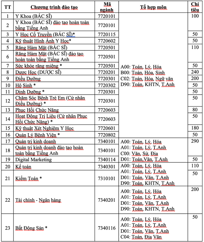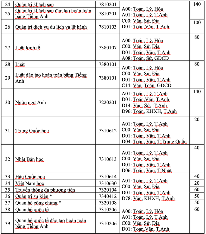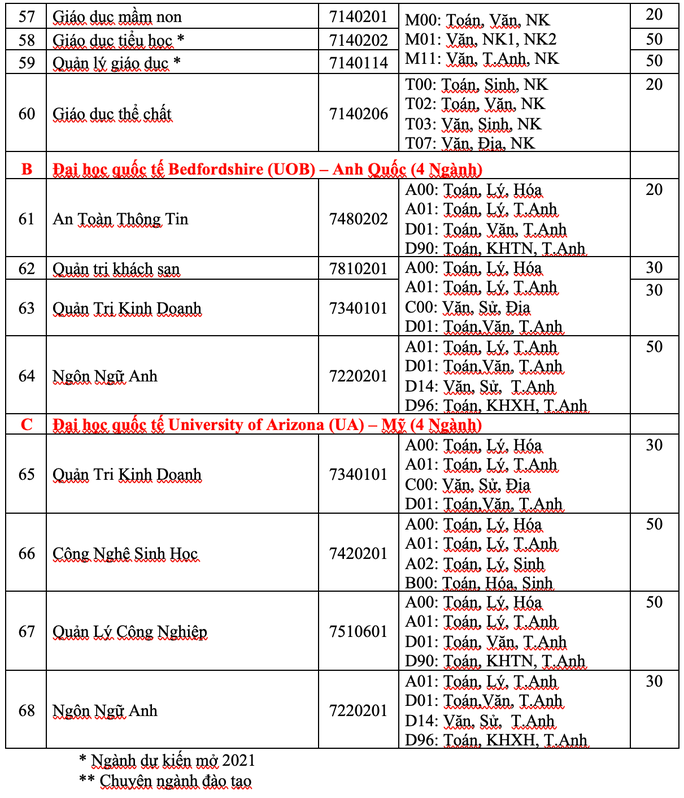 Các ngành học và tổ hợp của Trường ĐH Mở TPHCM năm 2021 Trong đó: