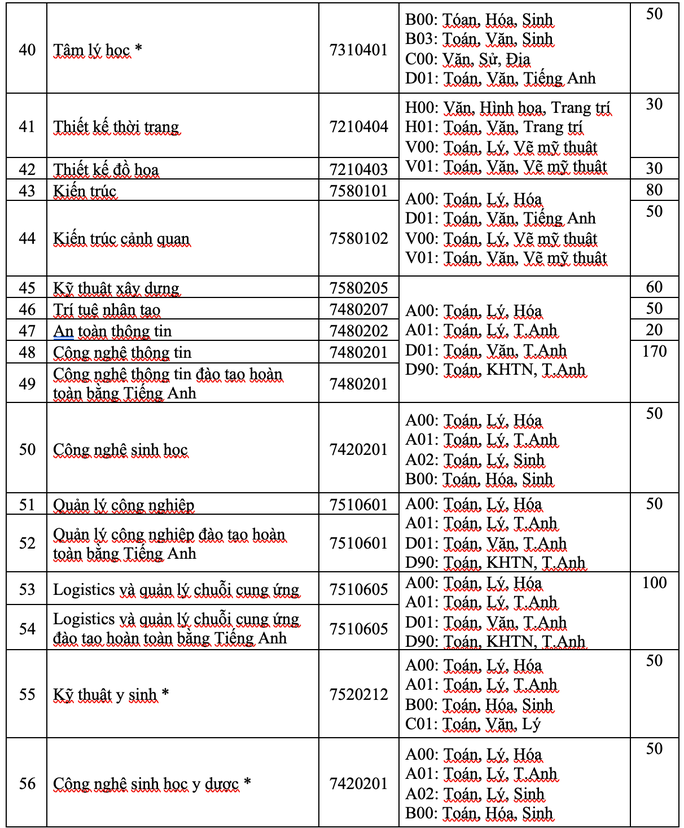 Các ngành tuyển sinh chương trình Chất lượng cao, môn ngoại ngữ được nhân hệ số 2, trừ các ngành: Khoa học máy tính, CNKT Công trình xây dựng và Công nghệ sinh học.