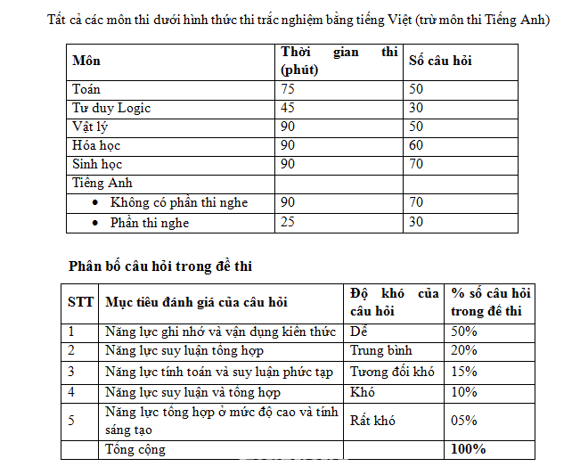 TS. Huỳnh Khả Tú, Trưởng Phòng Đào tạo trường ĐH Quốc tế cho biết, nội dung kiến thức gói gọn trong chương trình THPT và chú trọng kiến thức năm lớp 12. “Thí sinh không cần giỏi toàn diện, chỉ cần tập trung vào thế mạnh cá nhân thông qua bài thi theo môn tự chọn trong các môn Vật lý, Sinh học, Hóa học hoặc Tiếng Anh cùng với 2 môn bắt buộc là Toán và Tư duy Logic. Thí sinh được đánh giá dựa trên năng lực vận dụng kiến thức, năng lực tính toán giải quyết vấn đề, tư duy logic, năng lực suy luận và sáng tạo, đánh giá kiến thức tự nhiên, kỹ năng sử dụng ngôn ngữ”, TS Tú nói.