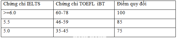 Đặc biệt, thí sinh có chứng chỉ ngoại ngữ, được miễn thi môn Tiếng Anh với mức quy đổi tương đương như sau (dự kiến):