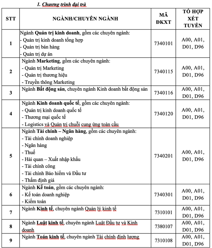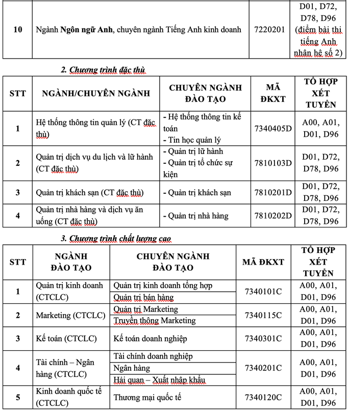 Theo đó, điểm sàn áp dụng cho tất cả các ngành tuyển sinh trình độ đại học chính quy thuộc các chương trình đào tạo (chương trình đại trà, chương trình đặc thù, chương trình chất lượng cao, chương trình chất lượng cao tiếng Anh toàn phần (chương trình quốc tế) là 19, không phân biệt tổ hợp xét tuyển.